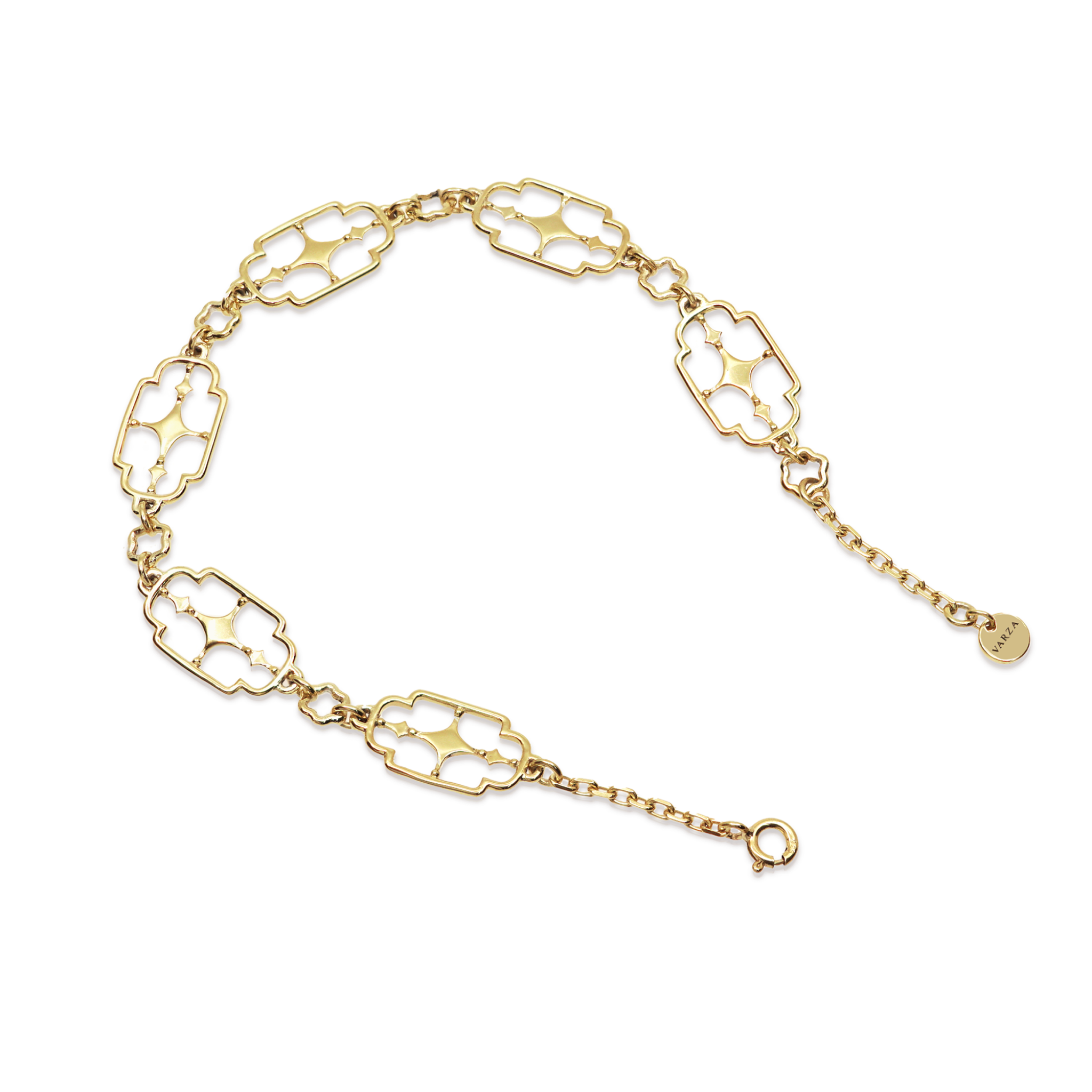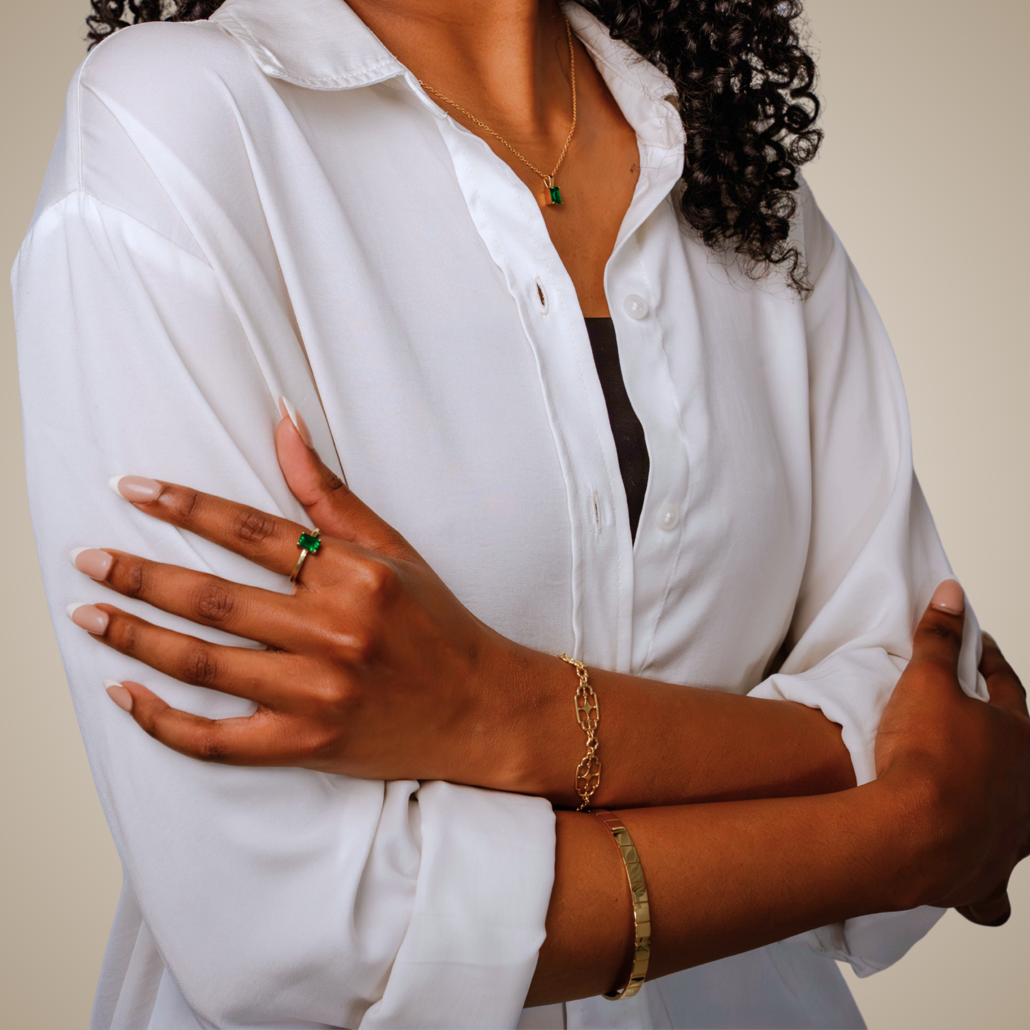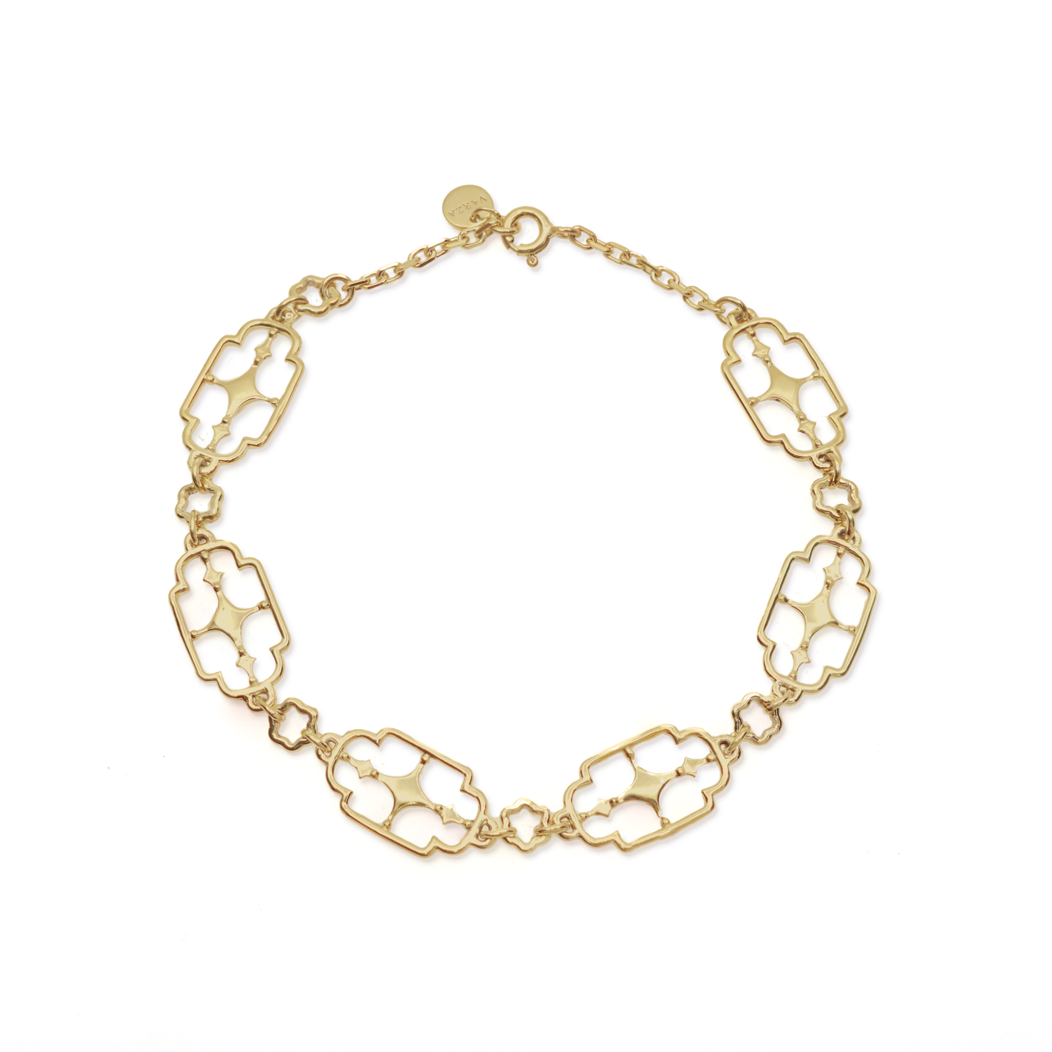 Inspired by Mumbai’s bold Art Deco architecture, this gold link bracelet is all clean lines and geometric elegance. Sleek on its own, striking when stacked, it's modern heritage, made wearable.